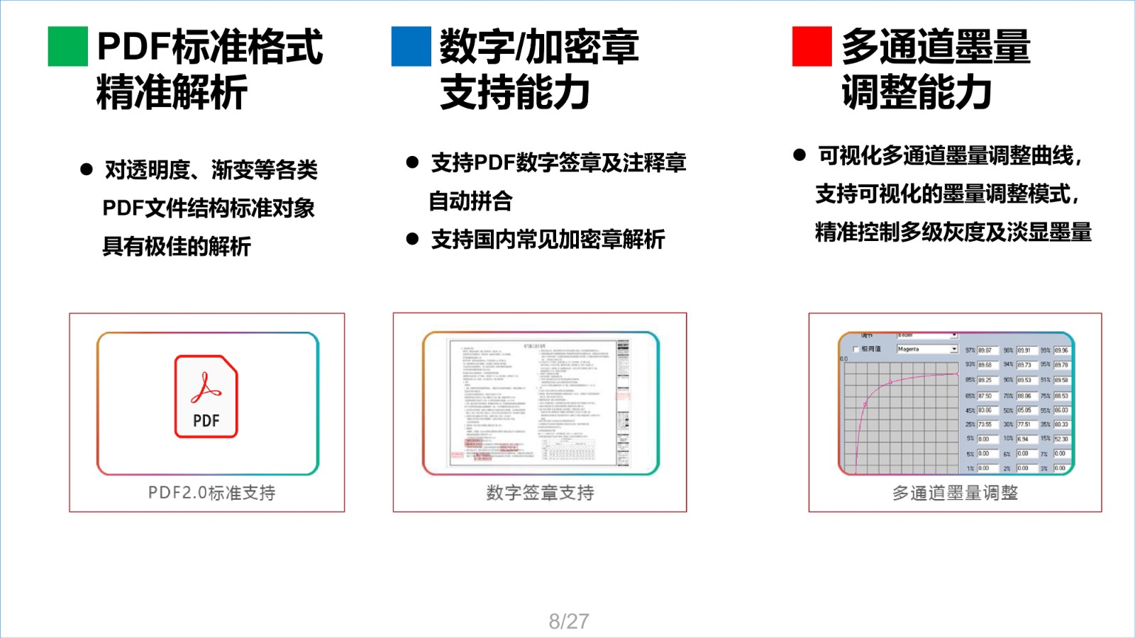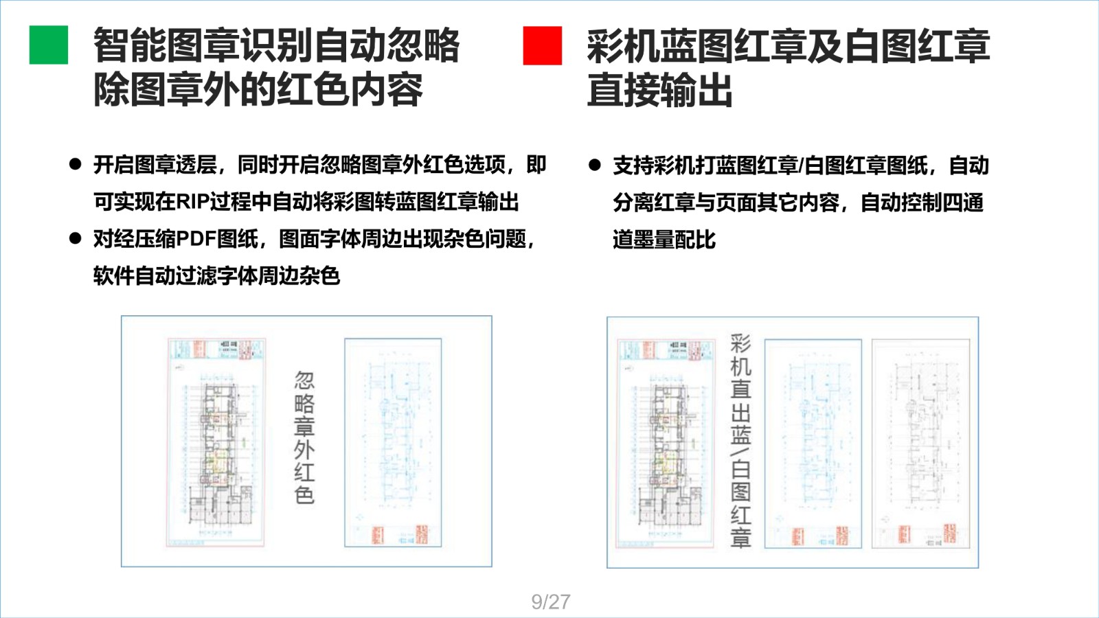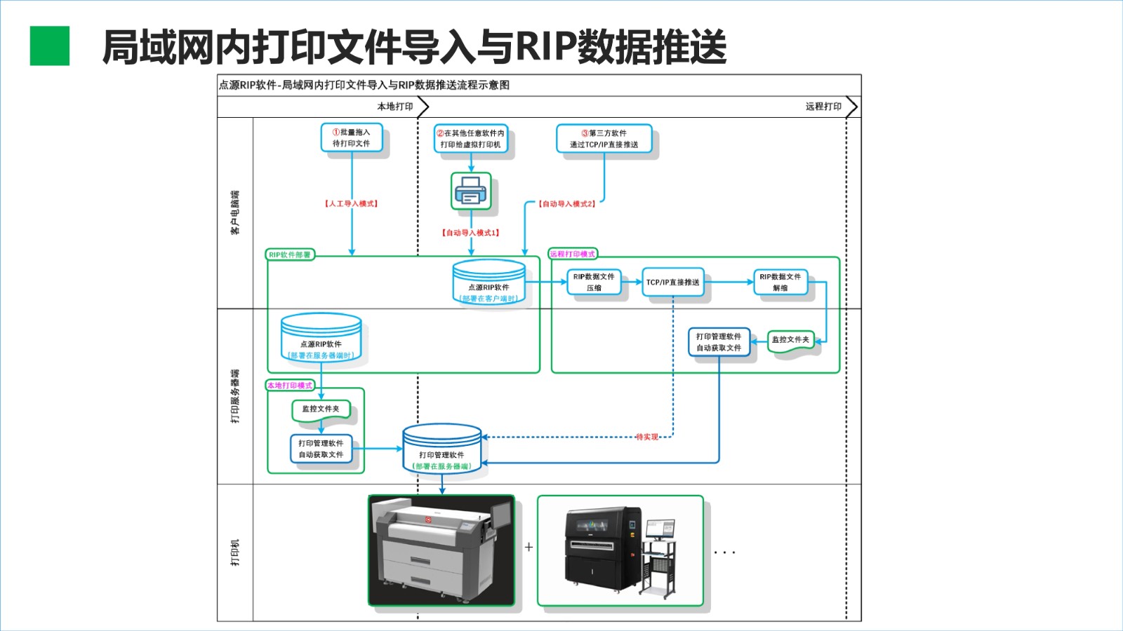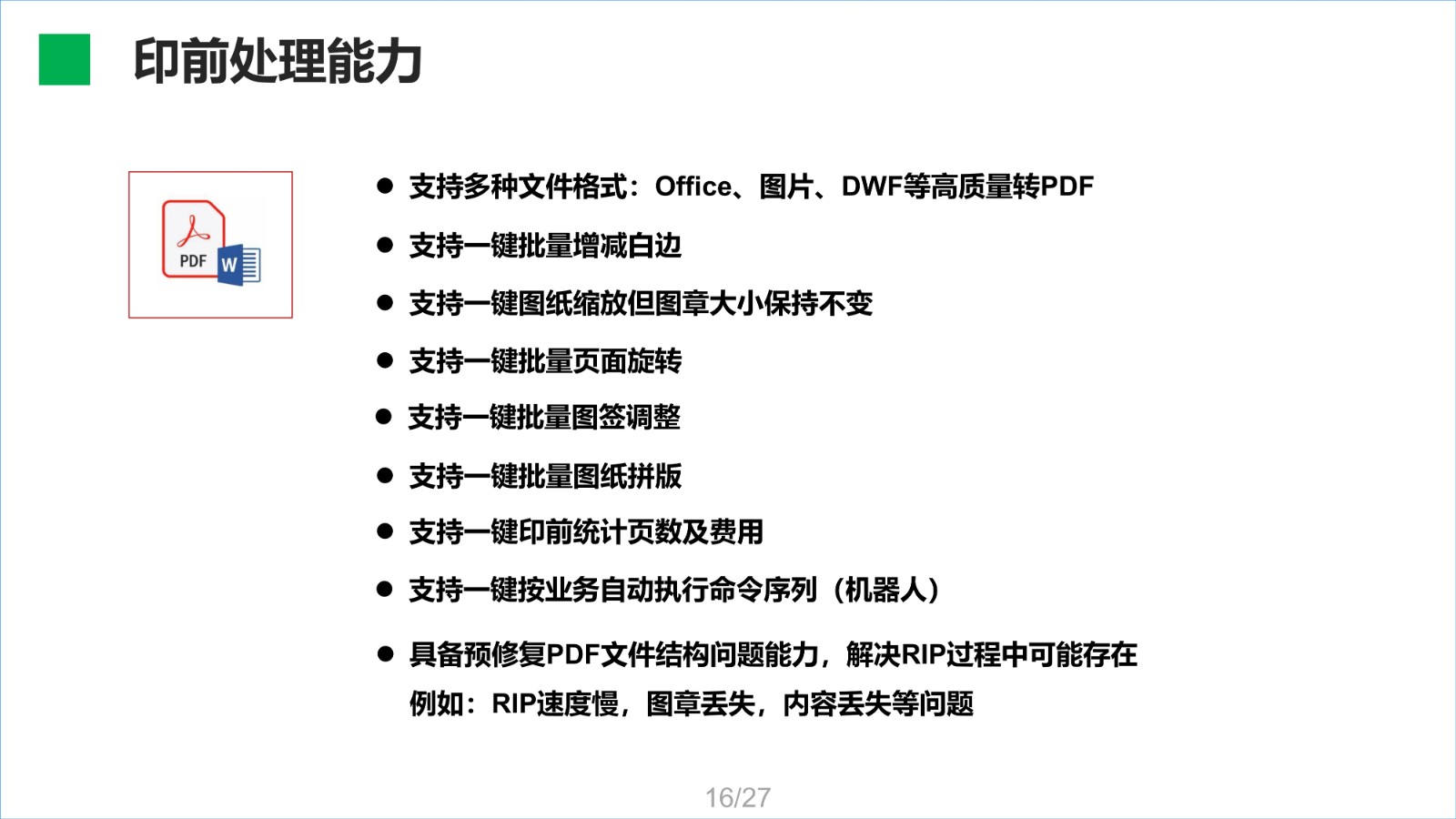 点源RIP软件是一款集印前处理与图像光栅处理一体化软件,RIP通过点源核心算法,能智能提取图面所有红章,并直接将PDF图纸解析处理成打印机能够识别的网点数据,最终生成相应的板卡打印控制PRN文件。该软件已经过客户应用验证,与国内行业同类产品比较,在处理速度及图章处理方面具备领先优势,在输出质量上与同类产品相当。