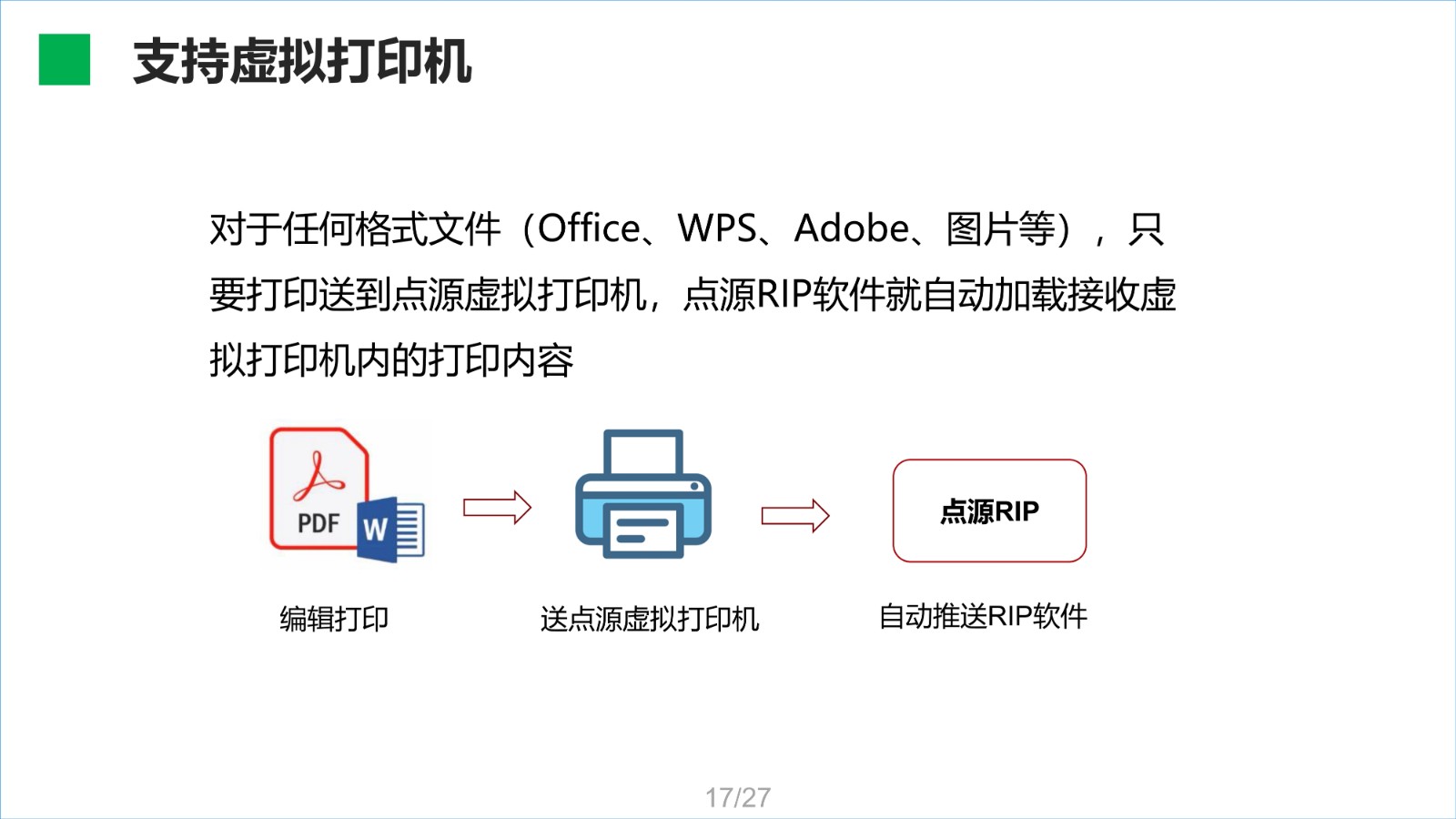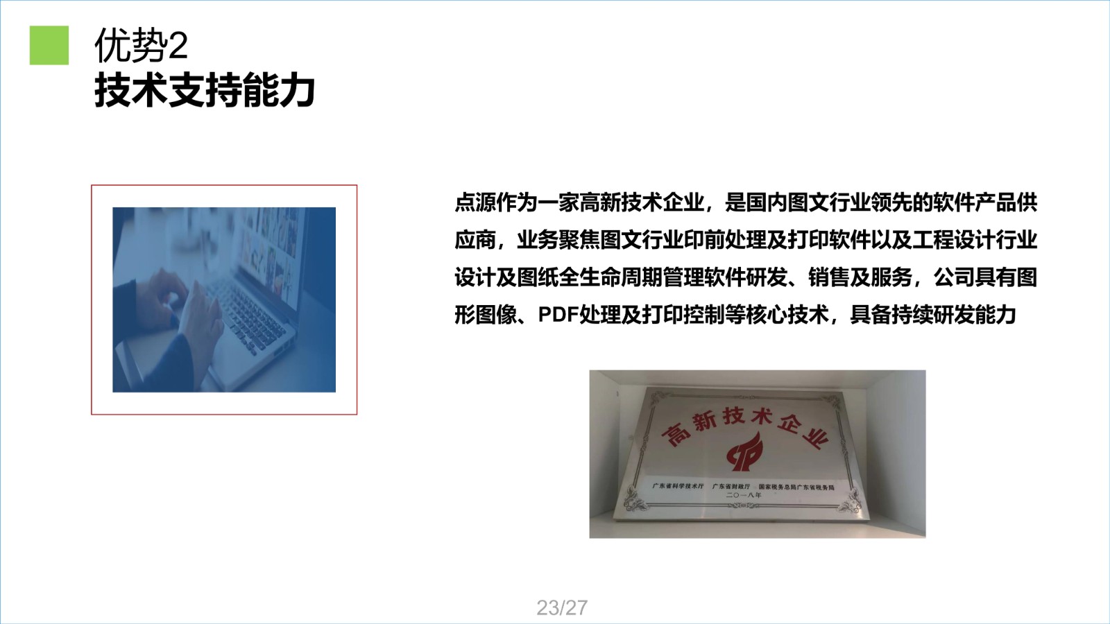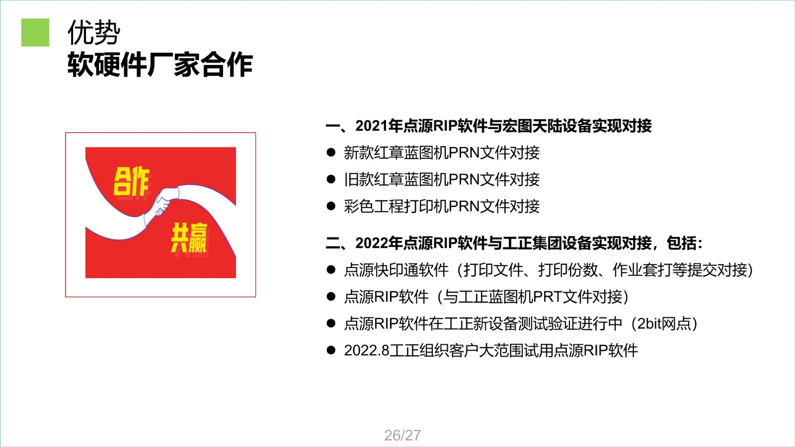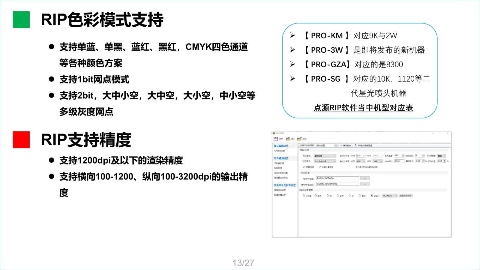 点源RIP软件是一款集印前处理与图像光栅处理一体化软件,RIP通过点源核心算法,能智能提取图面所有红章,并直接将PDF图纸解析处理成打印机能够识别的网点数据,最终生成相应的板卡打印控制PRN文件。该软件已经过客户应用验证,与国内行业同类产品比较,在处理速度及图章处理方面具备领先优势,在输出质量上与同类产品相当。