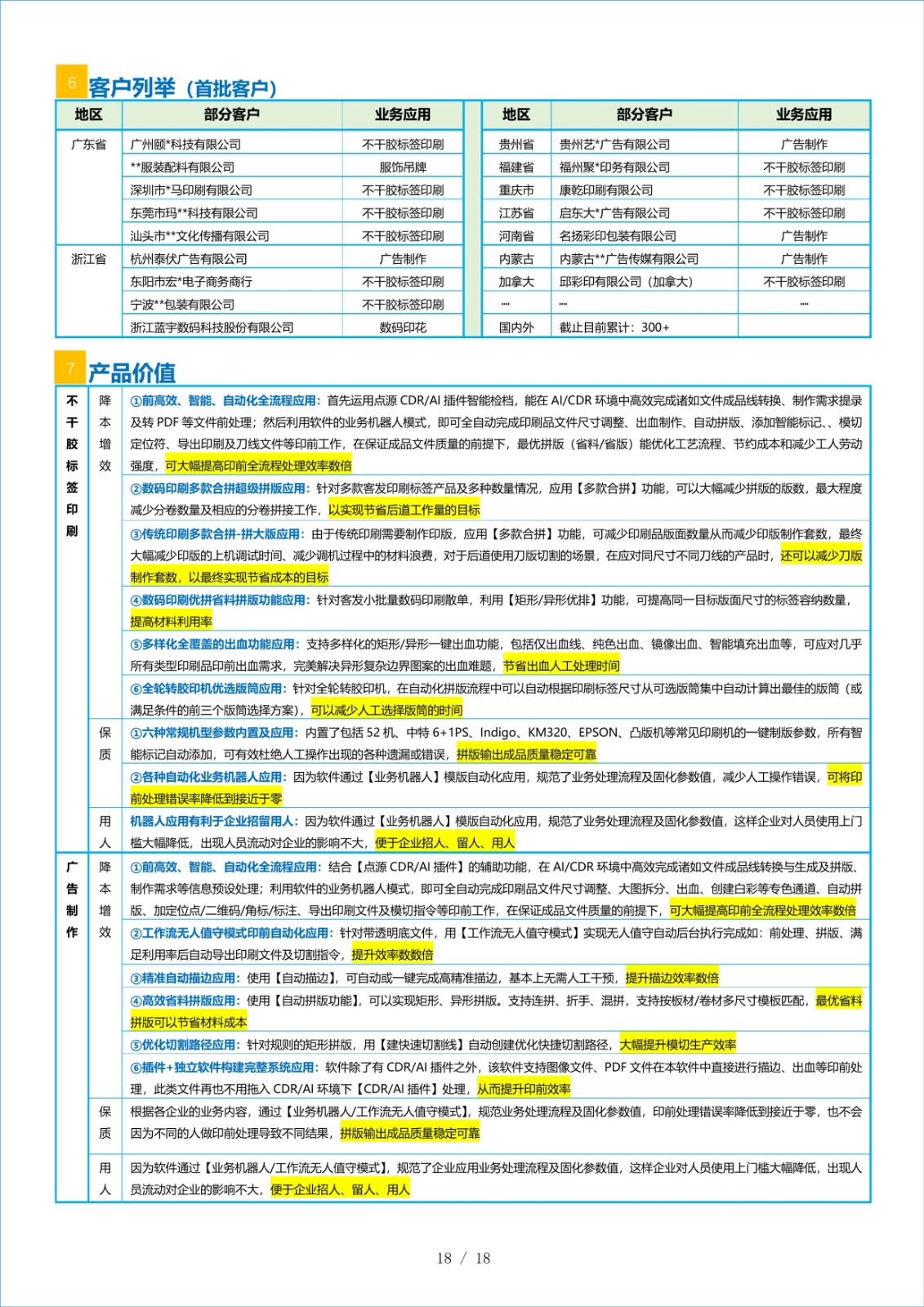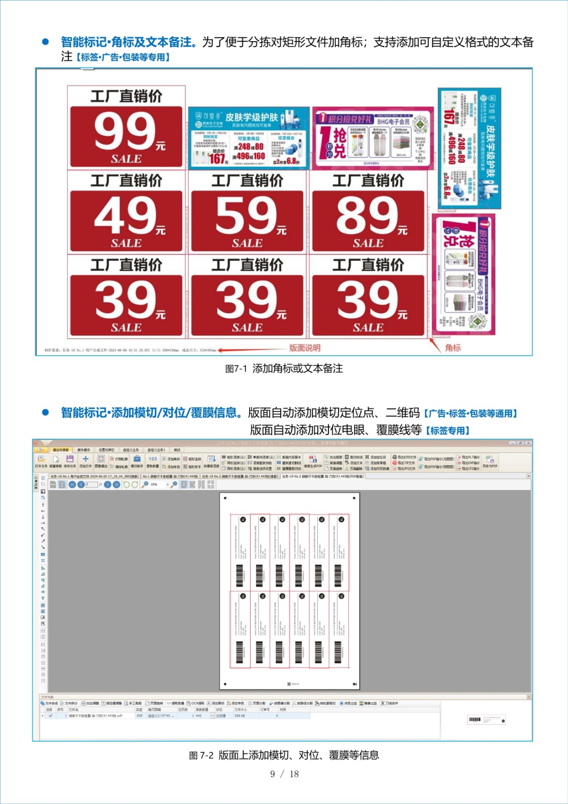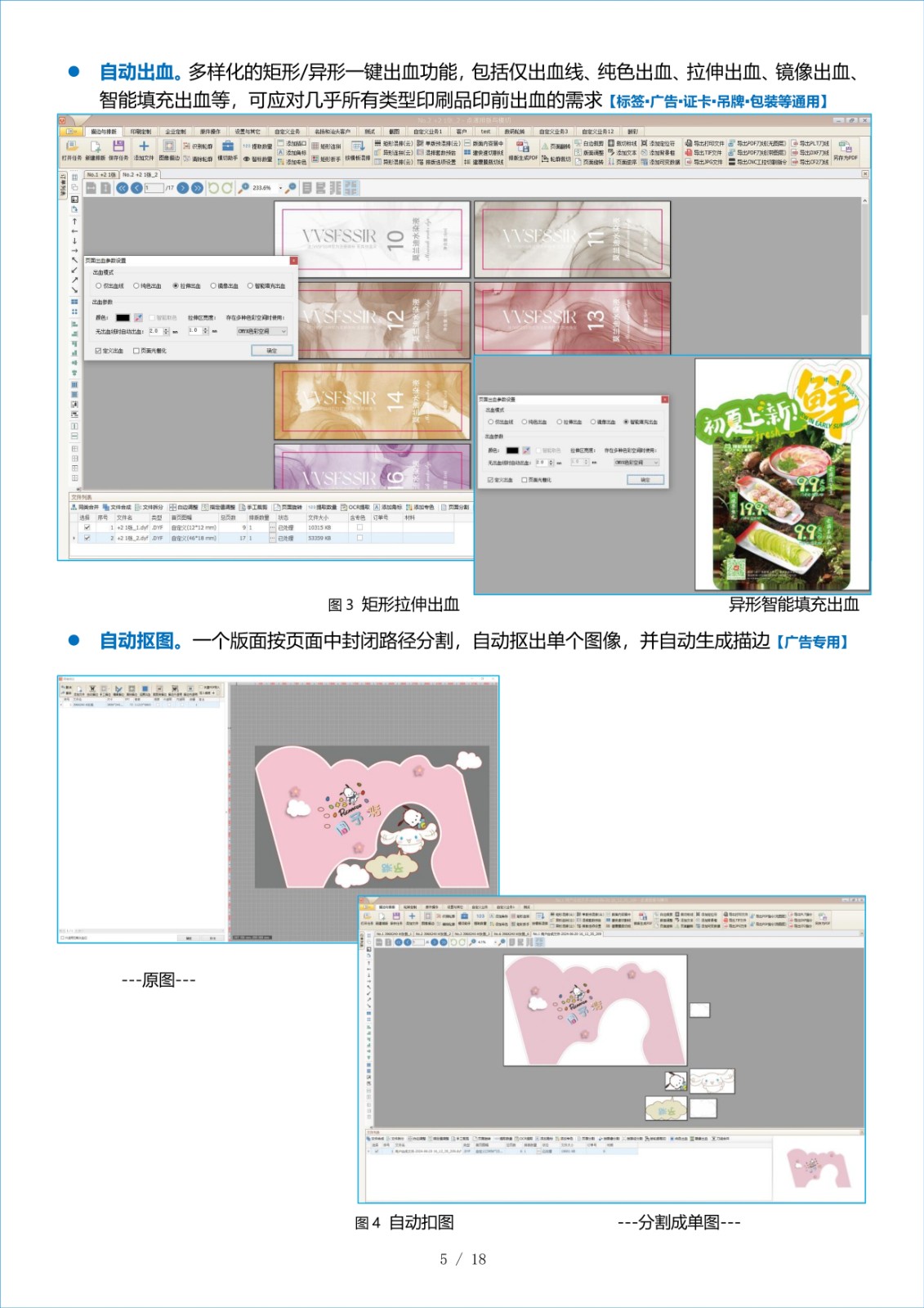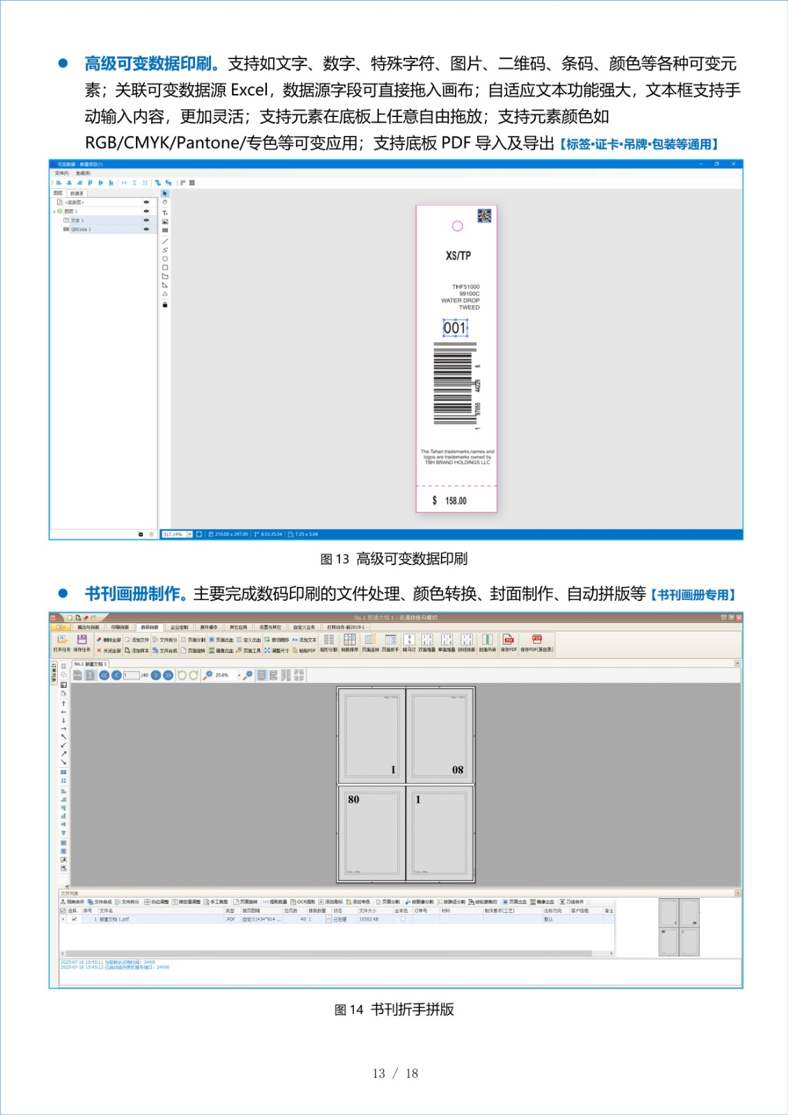 点源拼版与模切软件(印刷版) 印刷版是专门给印刷包装行业,针对数码印刷(含轮转)全自动应用的软件版本。印刷版软件不仅支持软件拼版全自动化业务应用,还支持对接ERP全流程应用。软件主要完成印前自动化包括智能检档、自动拼版及精益模切等全自动应用。 印刷版支持的印刷业务处理包括不干胶标签、小批量包装盒、书刊画册、服饰吊牌等。